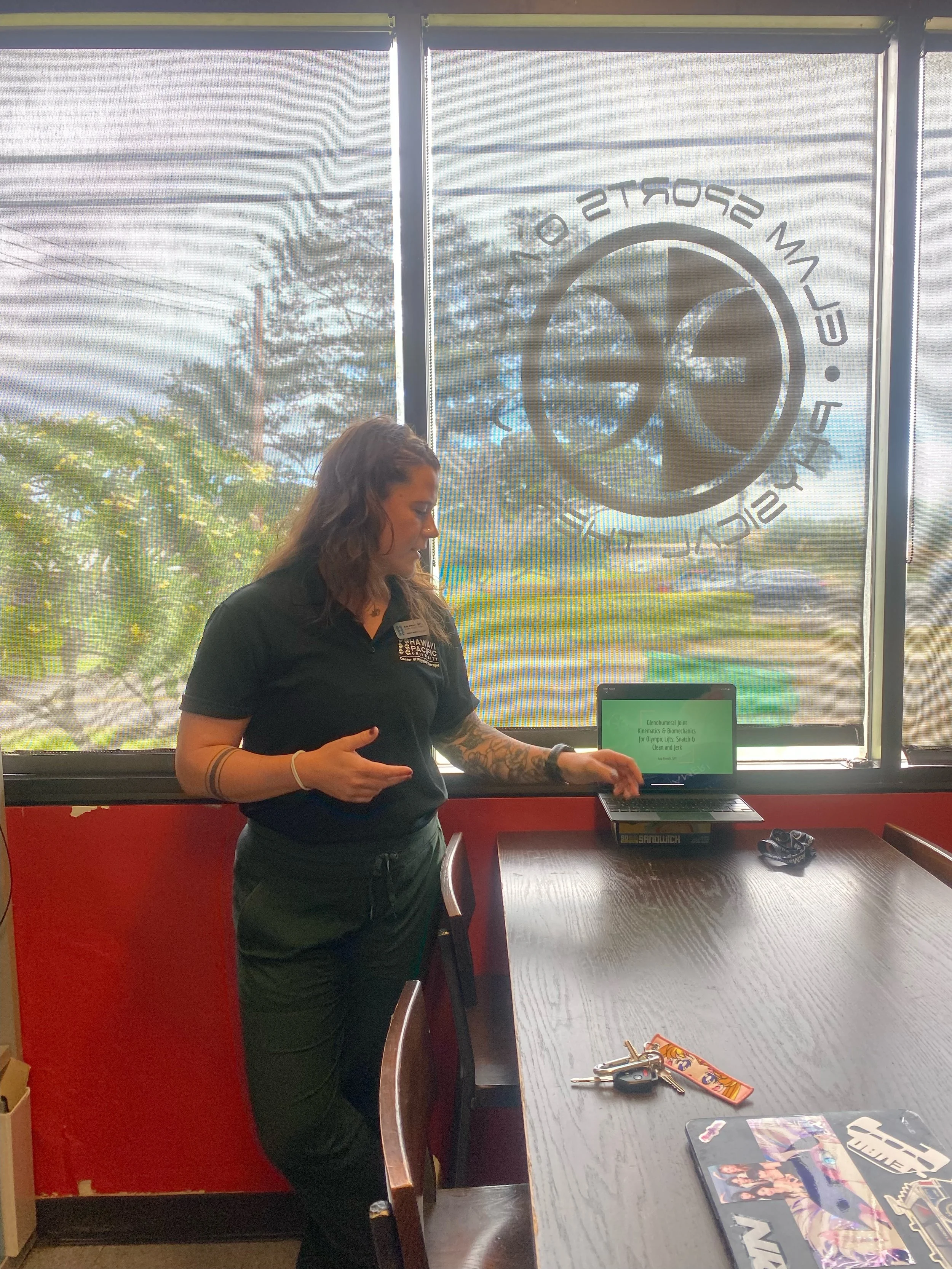 During my first clinical rotation at Elam Sports Oahu, my CI had me present an in service on a topic of my choosing that I expressed interest in. We spent a lot of time during my rotation discussing and practicing the different degrees and planes of activation of the different rotator cuff muscles. With my background in coaching Olympic lifting I was interested in which muscles are most active during the Clean and Jerk and the Snatch. I focused on the Glenohumeral Joint and which muscles are most active during different phases of each lift. This was a fun presentation because even though I was in a sport based clinic, my CI was not versed in Olympic or barbell lifting techniques and was interested in learning more.