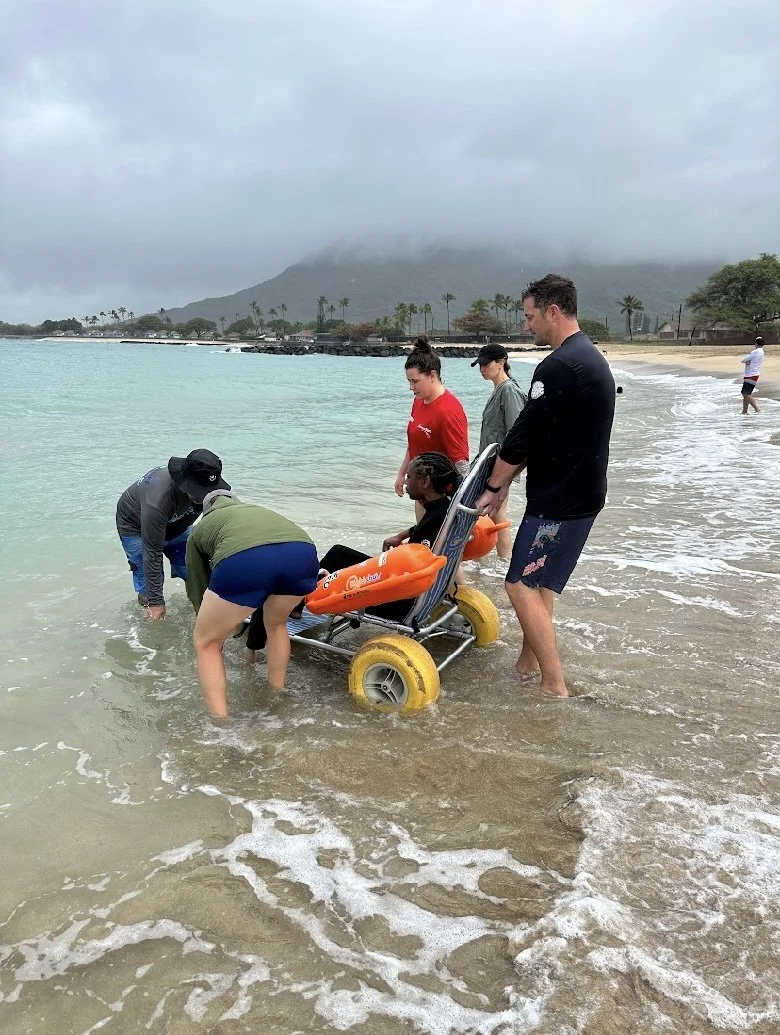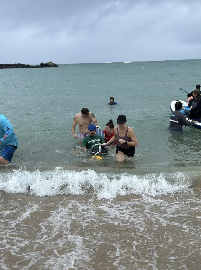 I spend a lot of time volunteering for Access Surf foundation working mainly with the transfer team. I have worked at multiple day at the beach days, wounded warrior days, and a surf camp involving the Craig Hospital from Colorado. This foundation holds a special place in my heart due to my interest not only in surfing but also in working with prosthetics and getting people access to the sports and opportunities they desire to be a part of. I also had the opportunity to be a part of the transfer team for the Hawai’i Adaptive Surf Competition where I was able to watch of HPU’s adjunct faculty compete.